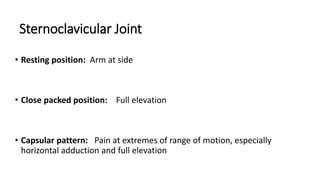 Web Capsular pattern of the shoulder. Each joint has a characteristic pattern of limitation. Lie directly on affected shoulder with head well supported by pillows.
